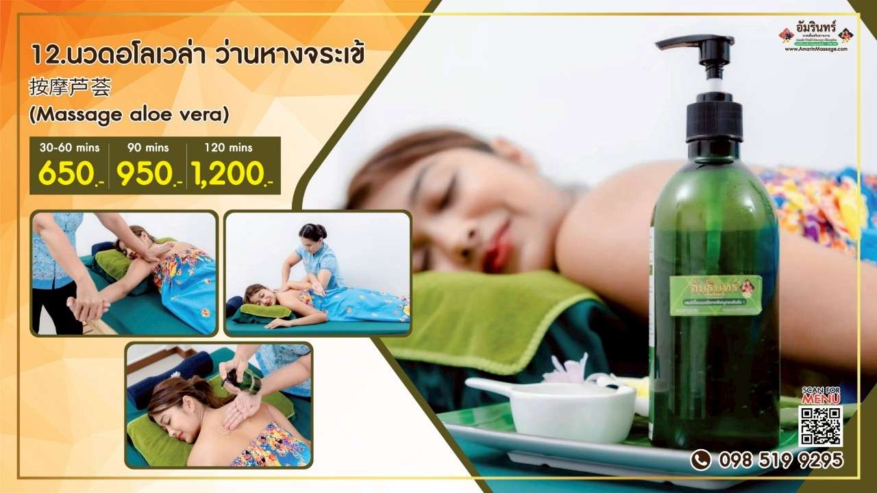 นวดอโลเวร่า หรือการนวดด้วยว่านหางจระเข้ เป็นศาสตร์การบำบัดที่ได้รับความนิยมมาอย่างยาวนาน ด้วยคุณสมบัติอันน่าทึ่งของว่านหางจระเข้ที่เต็มเปี่ยมไปด้วยวิตามิน แร่ธาตุและสารต้านอนุมูลอิสระ ที่อัมรินทร์นวดเพื่อสุขภาพ เรานำเจลว่านหางจระเข้แท้ 100% มาใช้ในการนวด เพื่อให้คุณได้รับประโยชน์สูงสุดจากการบำบัดนี้ การนวดอโลเวร่า สุราษฎร์ธานี ของเราไม่ได้เป็นเพียงแค่การนวดผ่อนคลายกล้ามเนื้อเท่านั้น แต่ยังเป็นการบำรุงและฟื้นฟูผิวที่ถูกทำลายจากแสงแดด มลภาวะและความเครียดในชีวิตประจำวันอย่างล้ำลึก. ประสบการณ์การนวดที่เงียบสงบและผ่อนคลายจะช่วยให้คุณลืมความเหนื่อยล้าไปได้อย่างสิ้นเชิง พร้อมเติมพลังบวกให้กับร่างกายและจิตใจ. เราใส่ใจในทุกรายละเอียด ตั้งแต่บรรยากาศของห้องนวดที่สะอาด สงบ ไปจนถึงเทคนิคการนวดของนักบำบัดผู้เชี่ยวชาญ ที่จะช่วยให้คุณรู้สึกสบายและปลอดภัยตลอดการเข้ารับบริการ 🌿💚